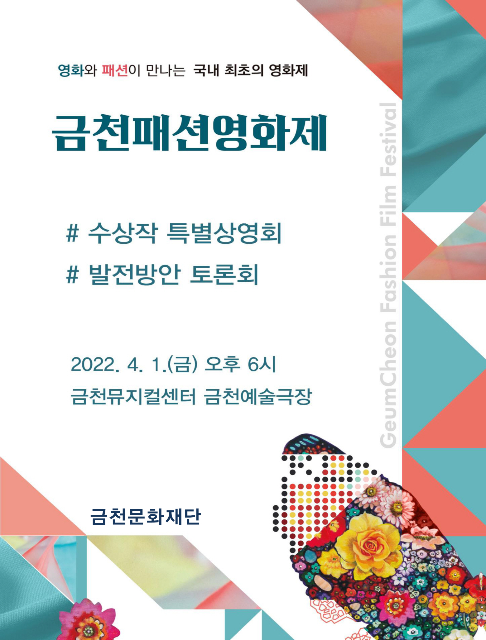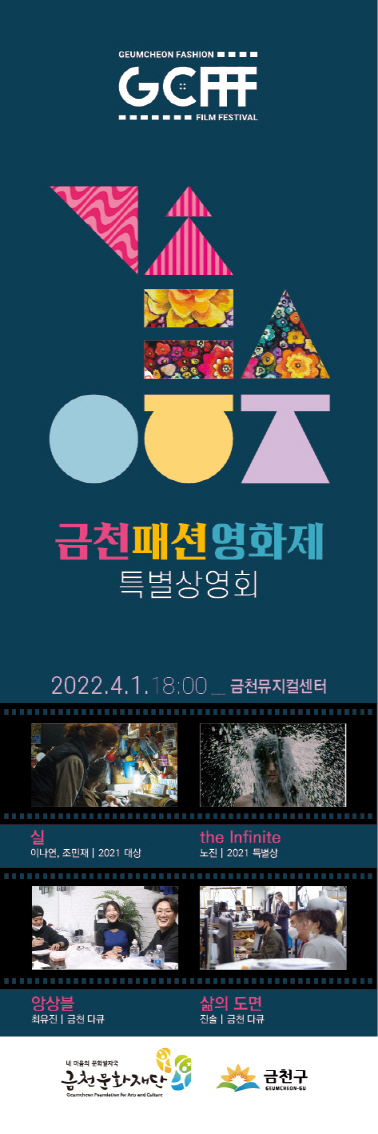 오는 4월 1일 금요일 오후 6시 금천뮤지컬센터에서 금천패션영화제 수상작 특별상영회를 개최합니다.