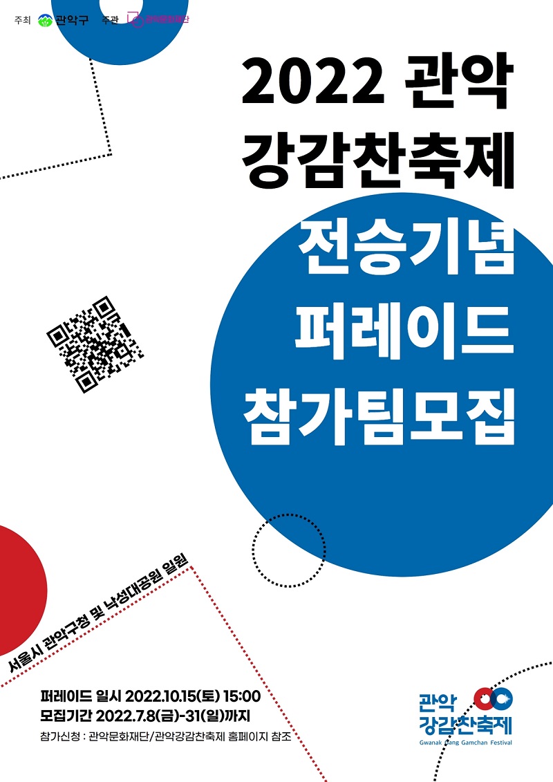 2022 관악강감찬축제 기간 중 개최되는「신 귀주대첩, 전승기념 퍼레이드」참가팀을 아래와 같이 모집하오니 많은 참여 바랍니다.